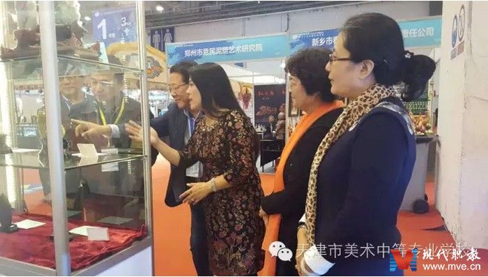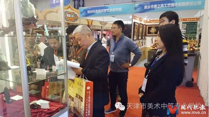 会展期间,大家做到“虚心学习、精心布展、用心参赛”,并与同期参展的我校历届优秀毕业生、校企合作单位进行了探讨。天津市工艺美术行业协会会长郭学波先生、副会长兼秘书长洪琴英女士、天津渤海轻工投资集团有限公司科技开发部部长穆国春女士亲临现场,慰问鼓励我校参展教师。