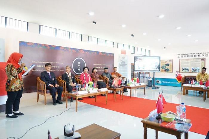 天津市东丽区职教中心学校校长刘萍致辞中介绍,中国-印尼鲁班工坊将围绕着汽车维修专业,同时,在智能制造、新能源技术、EPIP项目,通过双方师生的共同交流和学习,提升教学质量和人才培养水平,服务当地的经济发展。