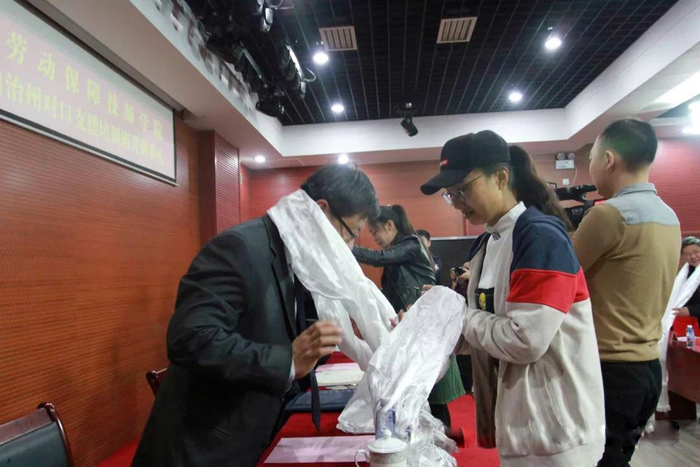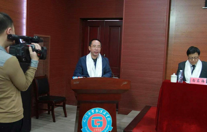 首先,勾东海院长代表学院对各位领导以及培训班学员的到来表示热烈欢迎,并请藏族学生代表为出席本次开班仪式的各位领导献上代表崇高敬意和美好祝愿的哈达。